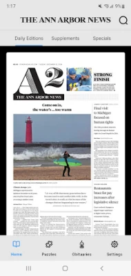 Welcome to the Ann Arbor News new Online Newspaper app! Dive into the newspaper anytime, anywhere. Keep up with award-winning local news, daily features, sports updates, entertainment highlights, special sections, and more—all at your fingertips!