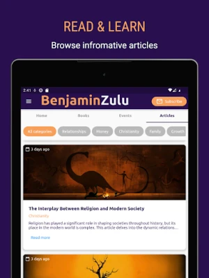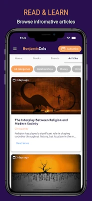 In summary, this application serves as a comprehensive hub for those seeking to engage with Benjamin Zulu's work, offering a one-stop solution for book purchases, event participation, and access to his valuable content and resources.