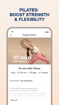 - Pilates and yoga workouts for flexibility, balance, and a lean, toned physique.