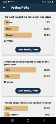 System enable process of collecting opinion via “Voting” option in the application. Community manager can publish topics for voting. Voting counts/results are seen by everyone to guarantee transparency of options and decisions within the community.